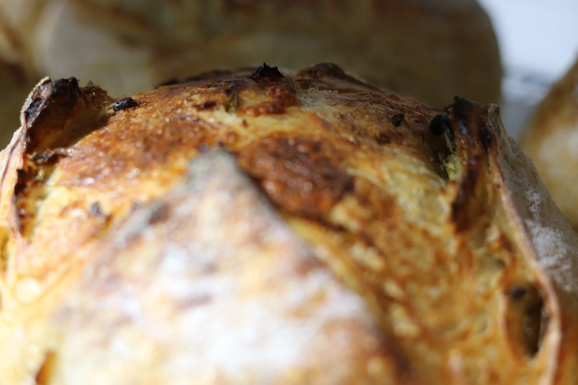 Steam baked in Dutch Oven to perfection. Our number one seller! Our same great sourdough flavor with fresh sliced jalapenos and Vermont white cheddar all throughout.